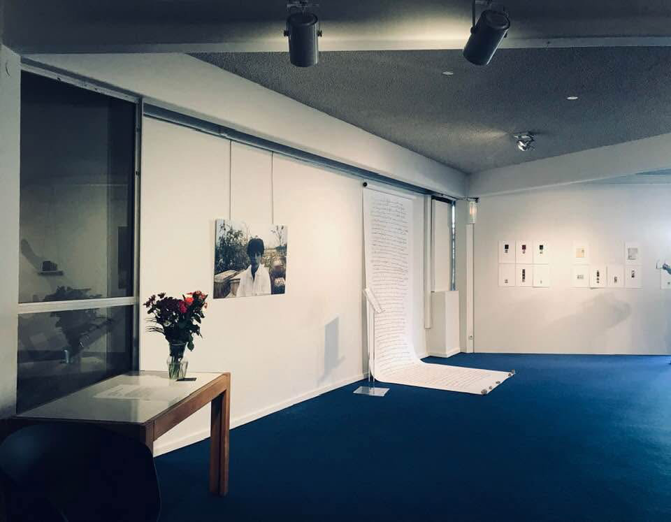 Origines Texte réalisé à partir d’échanges épistolaires avec les membres de ma famille, qui questionne le rapport que chacun entretient avec ses origines. Ce texte a été présenté sur un rouleau en papier d’1m20 de large sur 3 mètres de long à la médiathèque de Chamonix et sur un mur complet à la galerie La Mare.
