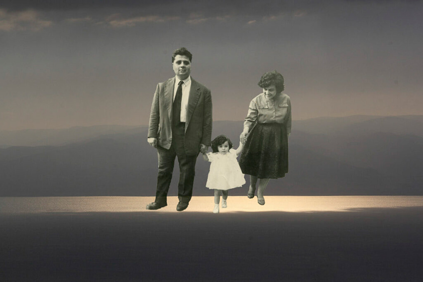 Les membres de ma famille apparaissent comme des personnages flottants entre territoires symboliques et imaginés. Ils prennent une place particulière dédiée à chacun dans une histoire complexe, entrecroisement de cultures, d’exil et de terroir. Une autre temporalité se fait sentir avec l’émergence de gestes immémoriaux transmis à travers ces histoires entremêlées de beauté et de traumatisme.