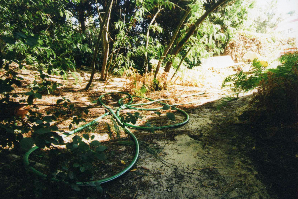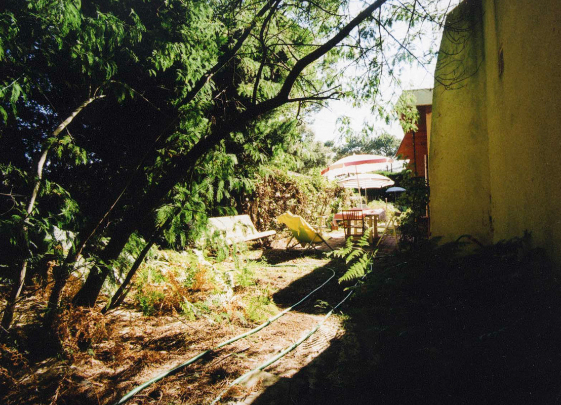 Inspection des lieux. Avant de pouvoir vaquer à mes occupations, j’ai besoin de m’imprégner de cette maison et de son jardin. Je photographie la végétation sauvage, les entrées de lumière par une fenêtre, entre deux pins, à travers des buissons.
